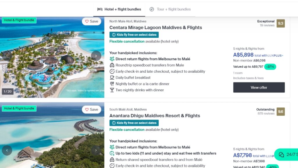However, the Melbourne to the Maldives flights cannot be booked on Maldivian’s website. Instead, travellers can book on the Luxury Escapes website here or through a registered travel agent via Travel Hub. Alternatively, you can book in person at the Luxury Escapes offices either in Melbourne Chadstone or Sydney Bondi, or by phoning Luxury Escapes travel agents on 1300 889 900.